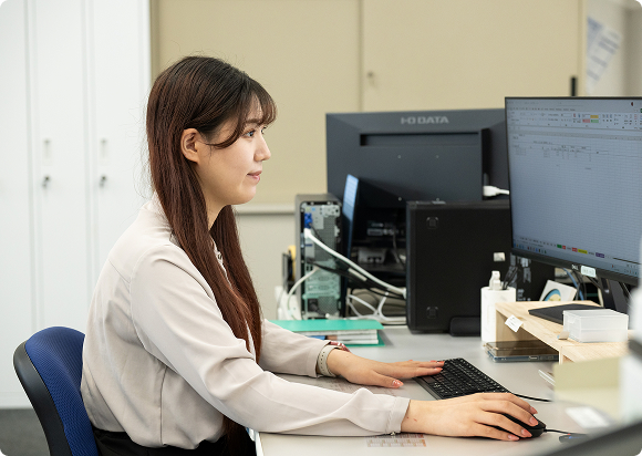 メールや電話の対応しながら開発部と話し合って商品の打ち合わせを行っています。
